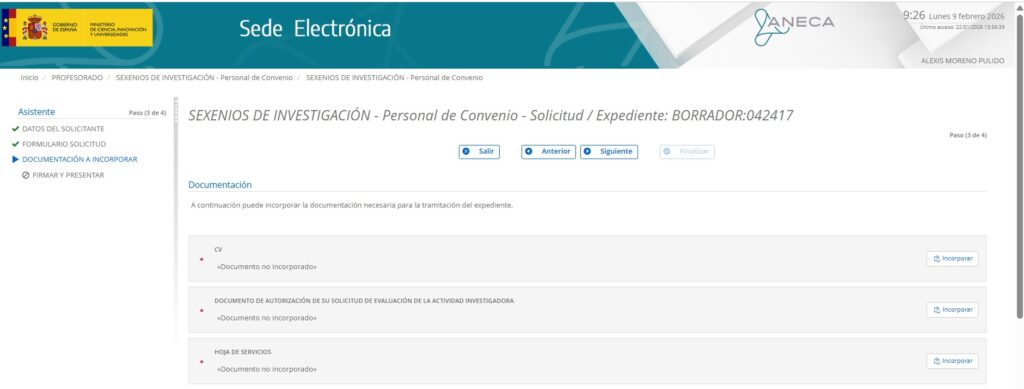 - Documentación acreditativa adicional, cuando la actividad investigadora se haya realizado en centros no reflejados en la hoja de servicios (contratos, nombramientos, credenciales o documentos equivalentes)