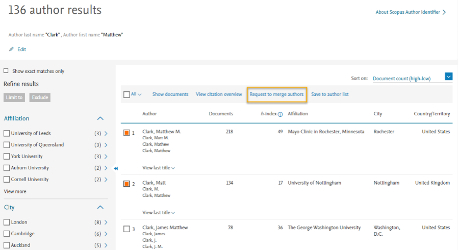 - Identificar los perfiles duplicados: localiza todos los Scopus Author ID que correspondan a tu producción científica.